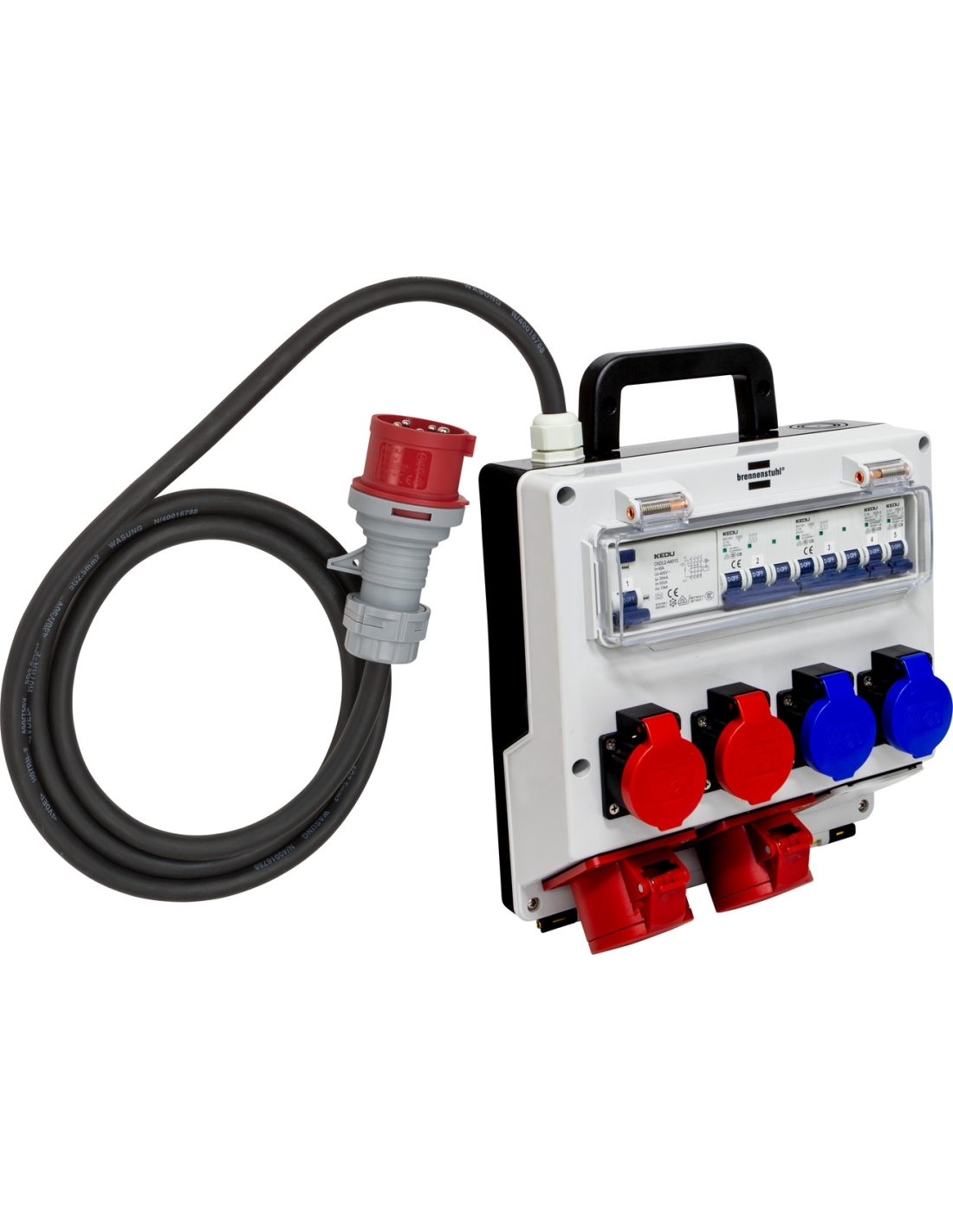 - 2 prises CEE 5 pôles, 400V/16A (IP44).